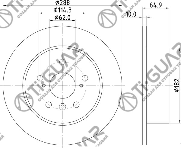Диск тормозной /задний /TI-GUAR для TOYOTA Harrier 2000-2003, LEXUS RX300 1998-2003, Kluger 2WD 2000-2007; 288/10мм; TG-42431-33030 4243106030 4243106070 RN1223