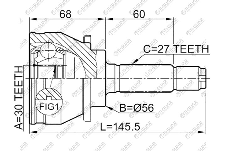 ШРУС наружный /передний правый /левый /TI-GUAR для Subaru Legacy 1989-1995 Forester SF5/SF9 1997-2002 Impreza 1992-1995; 30*56*27; TG-9108; (FU008) 28021AA501 TG9108Z48 0810008